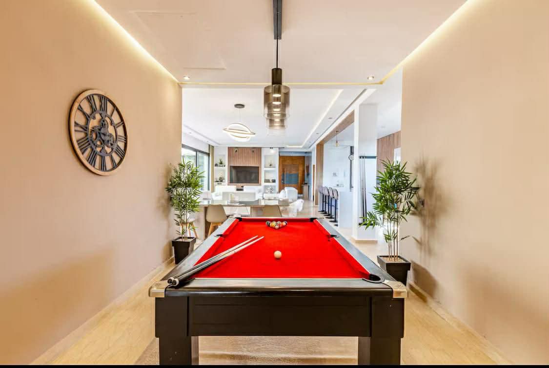 Private swimming pool Pool table (billiard) Air conditioning High-speed WiFi Fully equipped kitchen Outdoor dining area Garden / chill zone Smart TV Parking