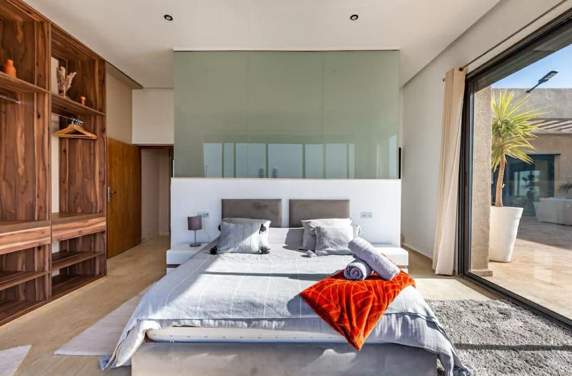 Private 3-Bedroom Luxury Estate with Pool & Billiards Lounge – 30 Min from Marrakech brings architectural calm, protected privacy, and MAYAKECH service precision into one address in Marrakech Outskirts – 30 minutes from City Center. It is shaped for guests who want space to slow down without surrendering a single standard.
